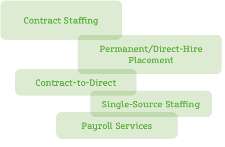 Direct-hire placement services provide the appropriate full-time candidate for your open position. Our account manager works closely with the hiring manager to gain a thorough understanding of the need and work environment. Our extensive industry experience allows us to engage candidates — passive or active, local or out-of-state — and to effectively find talented people who can help your business succeed.